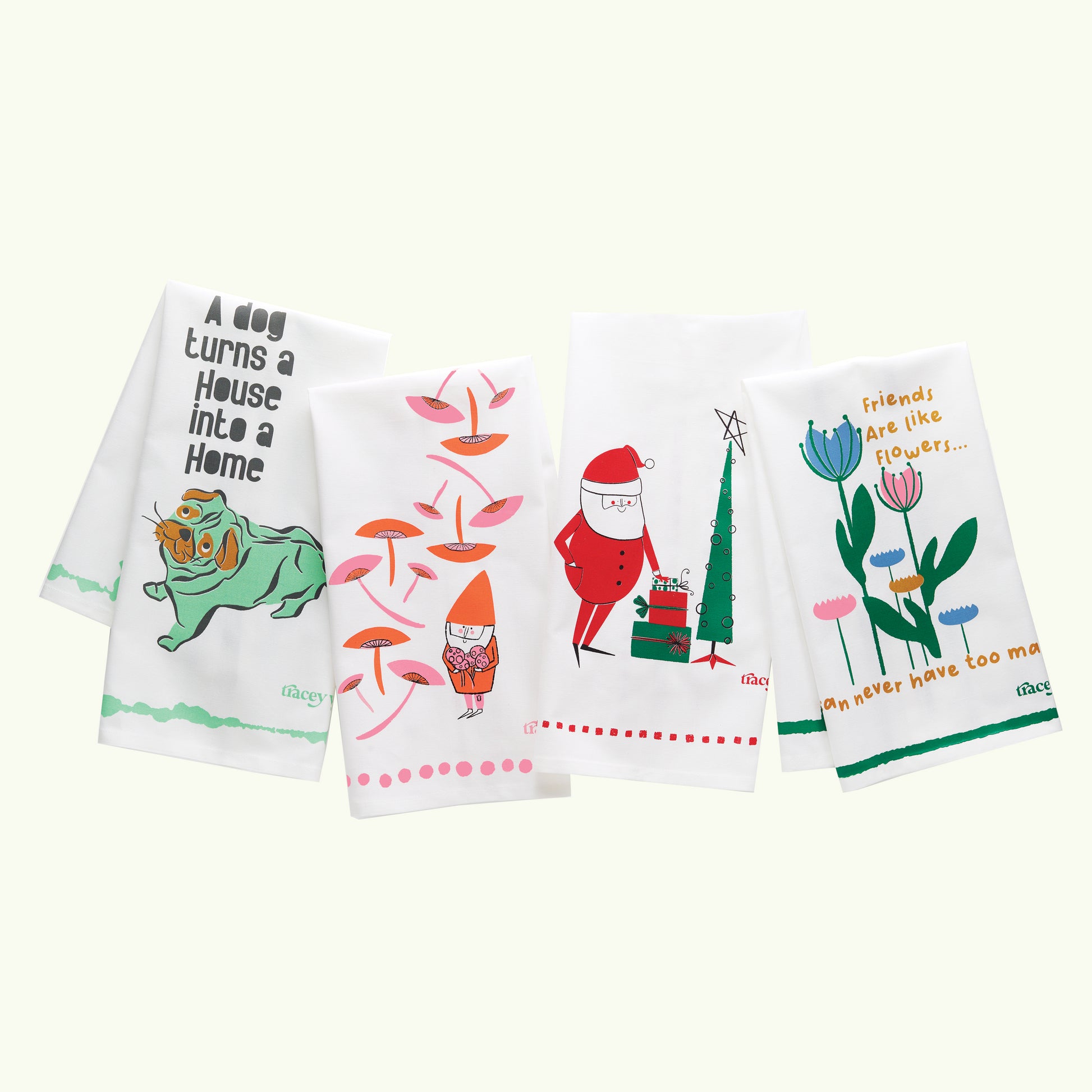 Add a touch of whimsy and humor to your kitchen with these charmingly illustrated dish towels made of premium cotton.