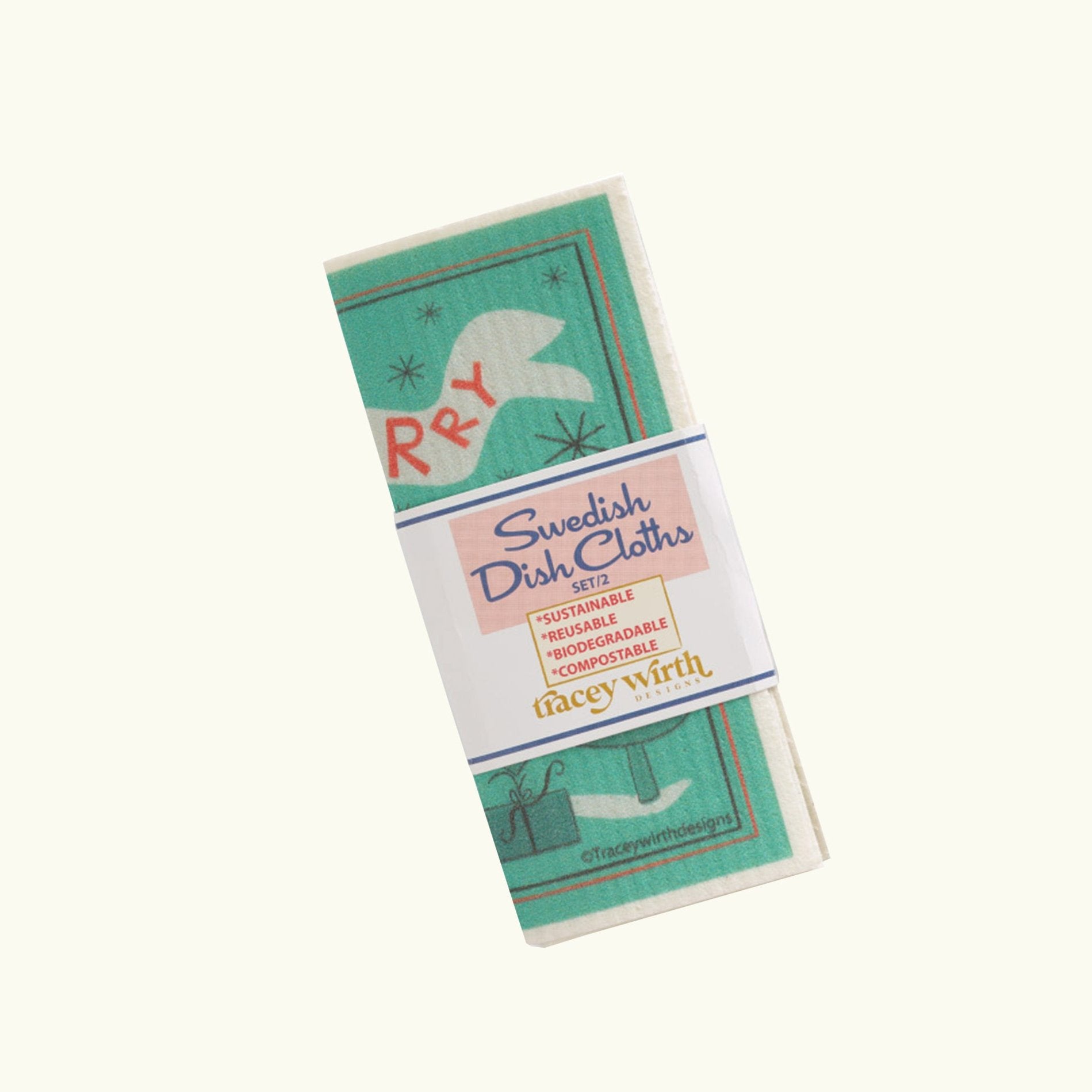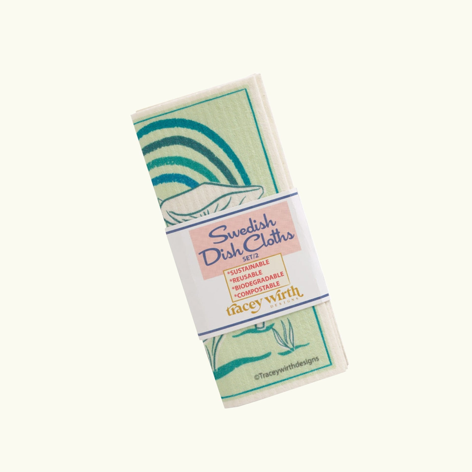 These dish cloths are made from 70% wood pulp and 30% cotton. They are created to be used over and over again and can replace up to 17 rolls of paper towels. Printed with non-toxic water based ink, use them for months, toss them into the top rack of the dishwasher when they need cleaning and when they are at the end of their life, you can recycle them with newspaper or compost them!